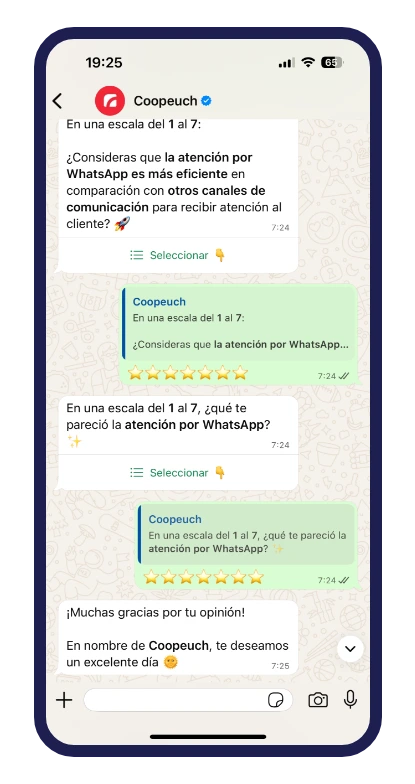 Contar con una visión clara, actualizada y basada en datos sobre la experiencia del cliente era clave para mejorar procesos y mantener altos estándares de atención. Para ello, se requería una herramienta sencilla e integrada, capaz de enviar encuestas de satisfacción a través de un canal cercano y de alta respuesta como WhatsApp.