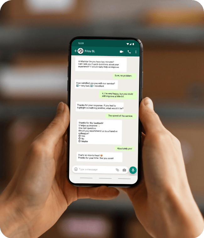 It is an intelligent chatbot that launches surveys automatically and conversationally through channels such as WhatsApp, webchat or social networks. It collects responses in real time, improves the experience and gives you valuable insights to make decisions.