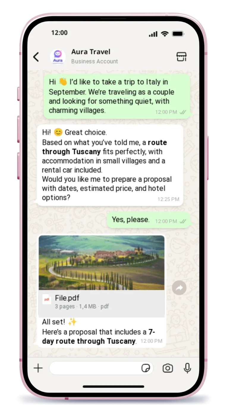 Questions about documentation, visas, baggage policies, or financing are repeated every day. AI responds instantly, allowing your team to focus on higher-value sales.