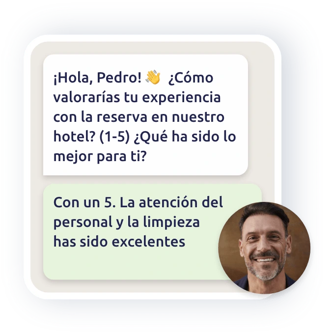 Sí. Puedes adaptar el tono, el diseño, los mensajes y las preguntas a tu marca. También puedes configurar diferentes encuestas según el tipo de cliente, canal o momento del viaje del usuario.
