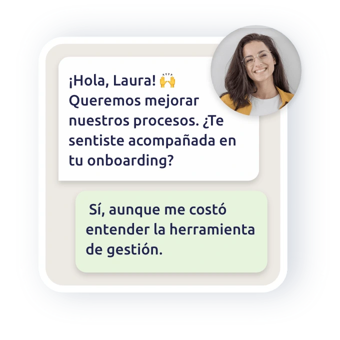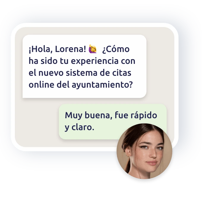 Es un chatbot inteligente que lanza encuestas de forma automática y conversacional a través de canales como WhatsApp, webchat o redes sociales. Recoge respuestas en tiempo real, mejora la experiencia y te da insights valiosos para tomar decisiones.