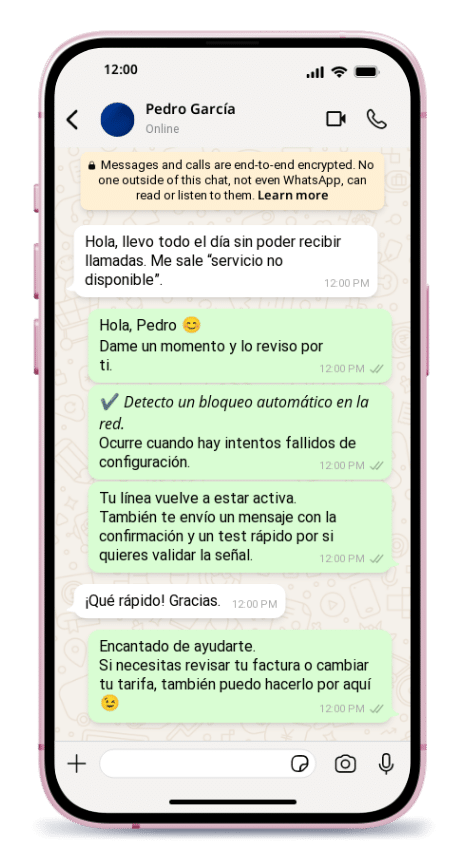 Los Agentes IA automatizan las gestiones repetitivas y liberan tiempo a tu equipo humano para que se concentre en tareas de mayor valor: atención personalizada, resolución de incidencias y fidelización. Esta combinación de IA y talento humano incrementa la productividad global del Call Center y reduce los costes operativos sin perder calidad ni empatía.