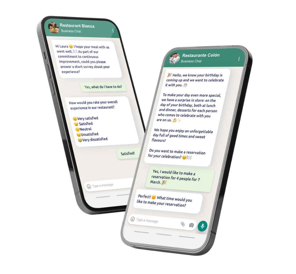 Permite a tus clientes reservar a través de WhatsApp, webchats, redes sociales… Con un chatbot disponible en varios canales, las reservas llegan sin esfuerzo y tu equipo puede centrarse en lo que mejor sabe hacer.