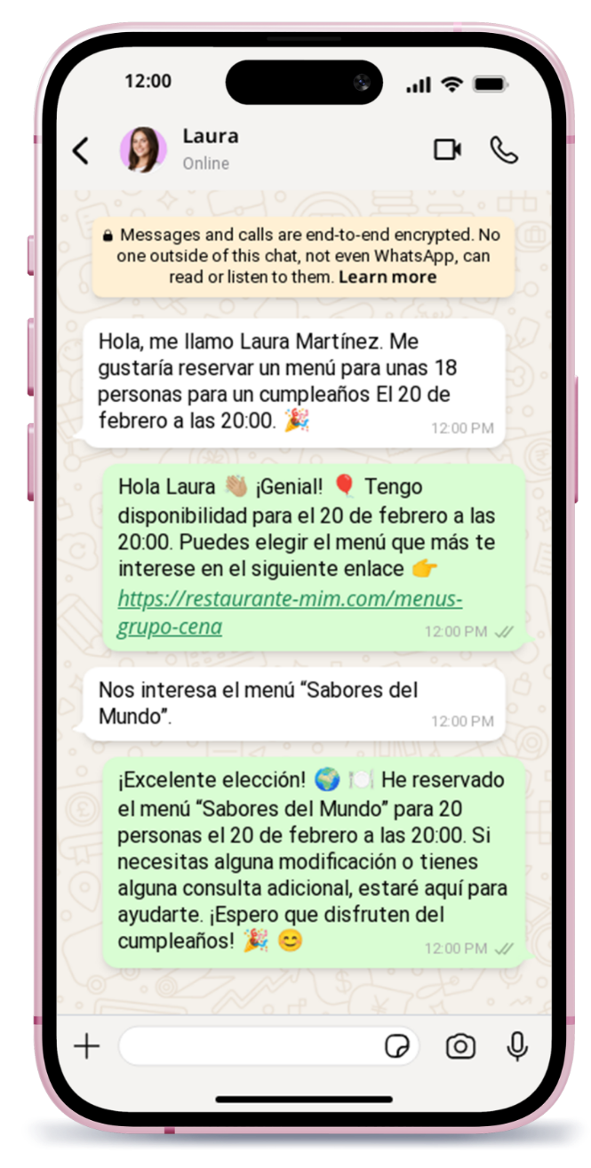 Los agentes IA reducen considerablemente las llamadas durante las horas de servicio al automatizar las reservas online y responder preguntas frecuentes. Esto permite que el personal se concentre en los clientes dentro del restaurante, sin distracciones, y mantenga un mejor nivel de atención.